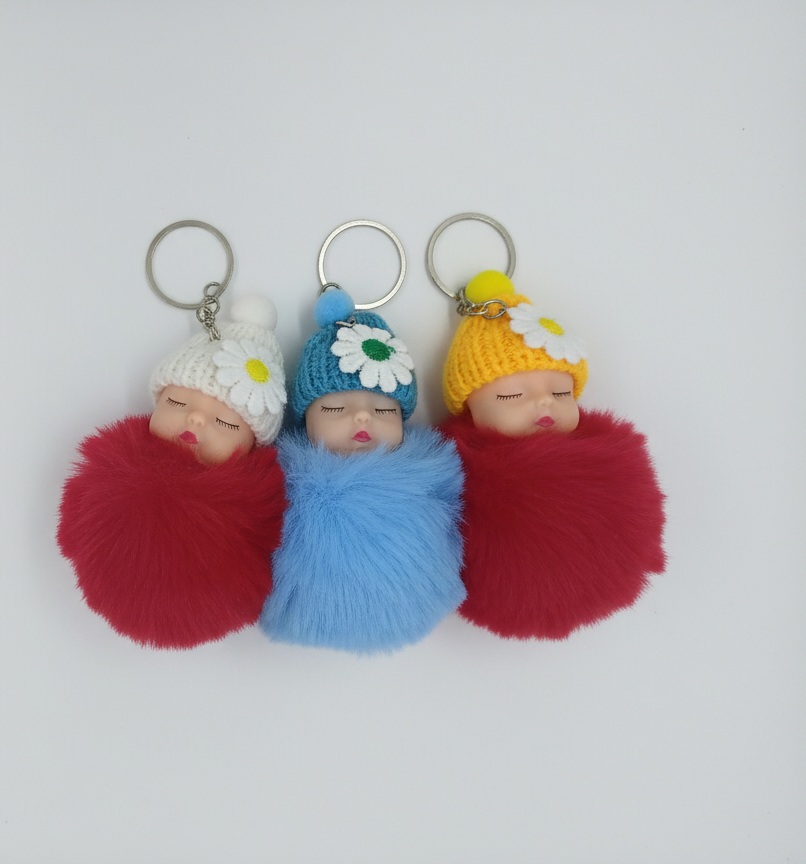 جاکلیدی خوابالو پشمالو با کلاه بافتنی و گلدار – مناسب هدیه و استفاده روزمره