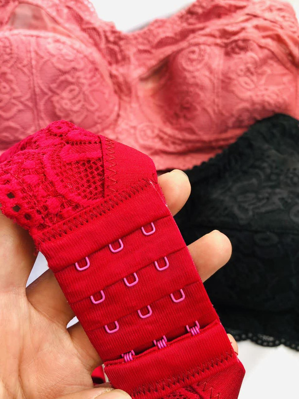 سوتین زنانه دانتل نخی صورتی با کش مخفی